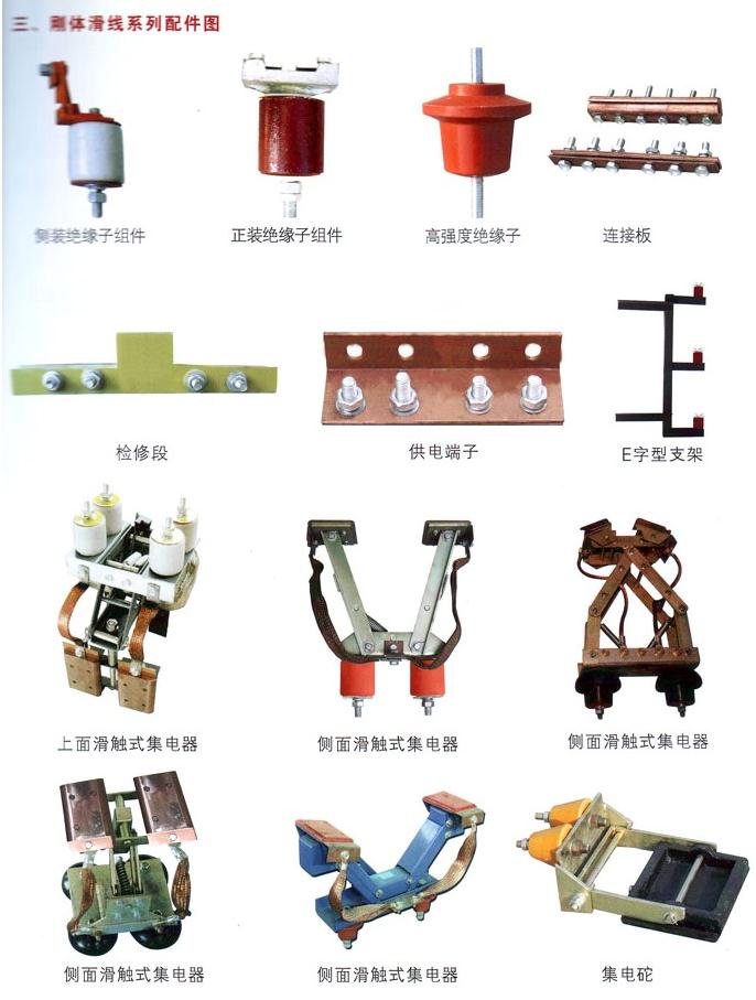 剛體滑觸線由梯形銅導(dǎo)軌、槽型鋼架,絕緣氣組件以及外置電器等組件組合而成。由于該產(chǎn)品具有電載流量大,耐高溫、抗腐蝕的特點(diǎn),因此被冶金、造船、港口等廣泛應(yīng)用。