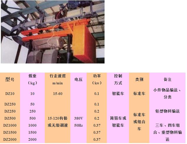 電動(dòng)自行小車(chē)輸送系統(tǒng)是在水平、垂直方向都能自由行走的單軌系統(tǒng)。由軌道、道岔、升降裝置、電控系統(tǒng)五大部分組成。廣泛地應(yīng)用于機(jī)械、化工、汽車(chē)生產(chǎn)流水線、檢測(cè)線和郵電、醫(yī)院、海關(guān)等部門(mén)小件物品輸送。