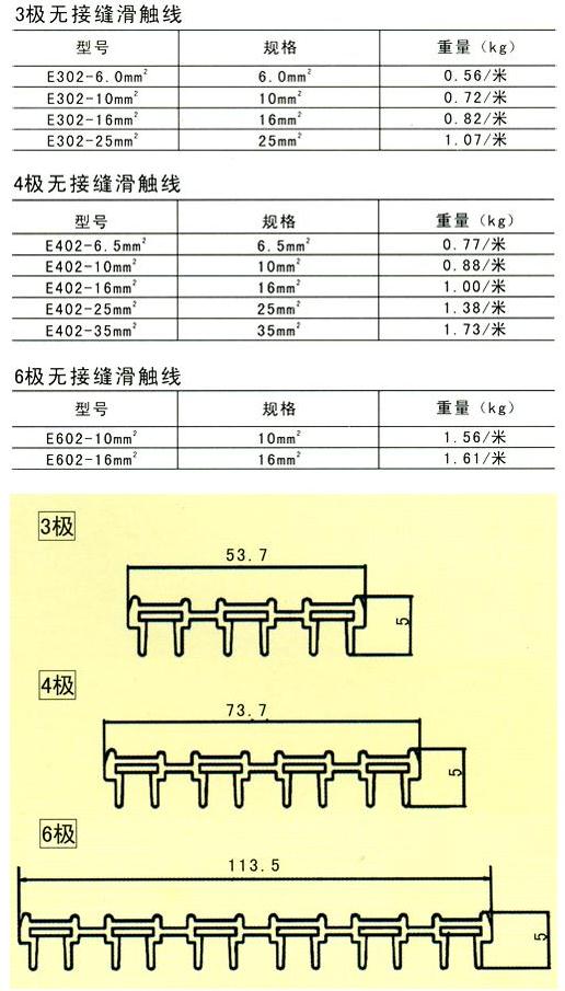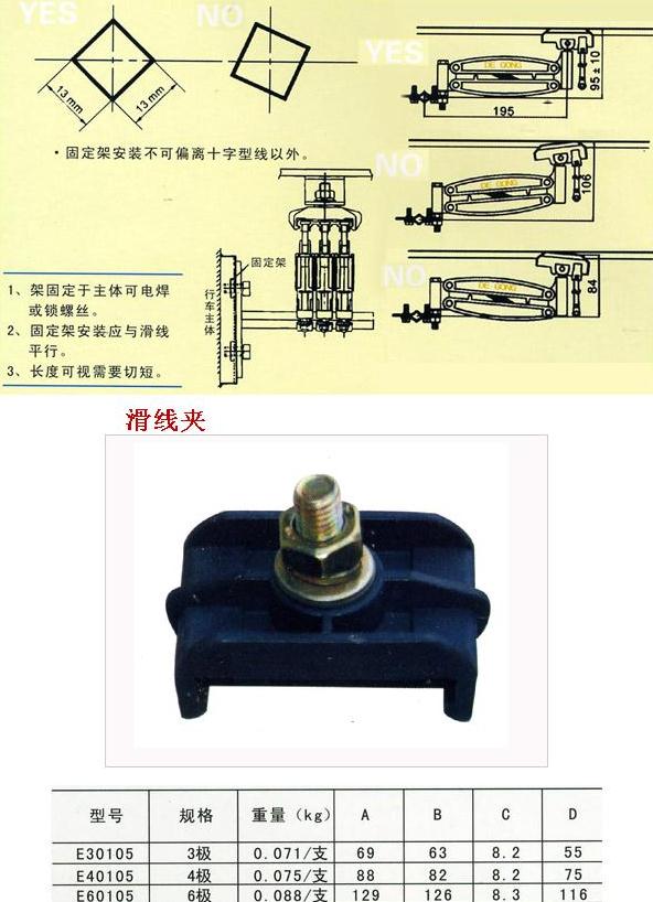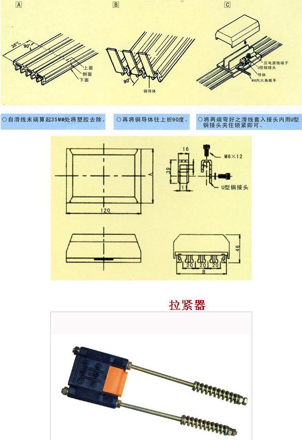 柔性一體式滑觸線是以無(wú)氧銅(導(dǎo)電率達(dá)99.99%)輸送電源、銅導(dǎo)體之厚度厚(一般標(biāo)準(zhǔn)厚為2.8m/m×10W)、壓降小、導(dǎo)電率倍佳;可根據(jù)用戶的車間長(zhǎng)度或用戶的需求來(lái)配一條以之相同長(zhǎng)度的安全電軌,使整個(gè)車間安全配電中間沒(méi)有任何接口,真正解決了國(guó)產(chǎn)滑觸線因接口多經(jīng)??ㄗ〖娝⒍斐啥搪坊虿荒苓\(yùn)行的問(wèn)題。并且適用于曲線、弧形及高低行走的設(shè)計(jì),并且安裝簡(jiǎn)便。從而使整套天車工程美觀、整潔又安全。產(chǎn)品有3P、 4P、 6P等規(guī)格,在自動(dòng)化生產(chǎn)的行列中,絕對(duì)是供電系統(tǒng)最佳的選擇。